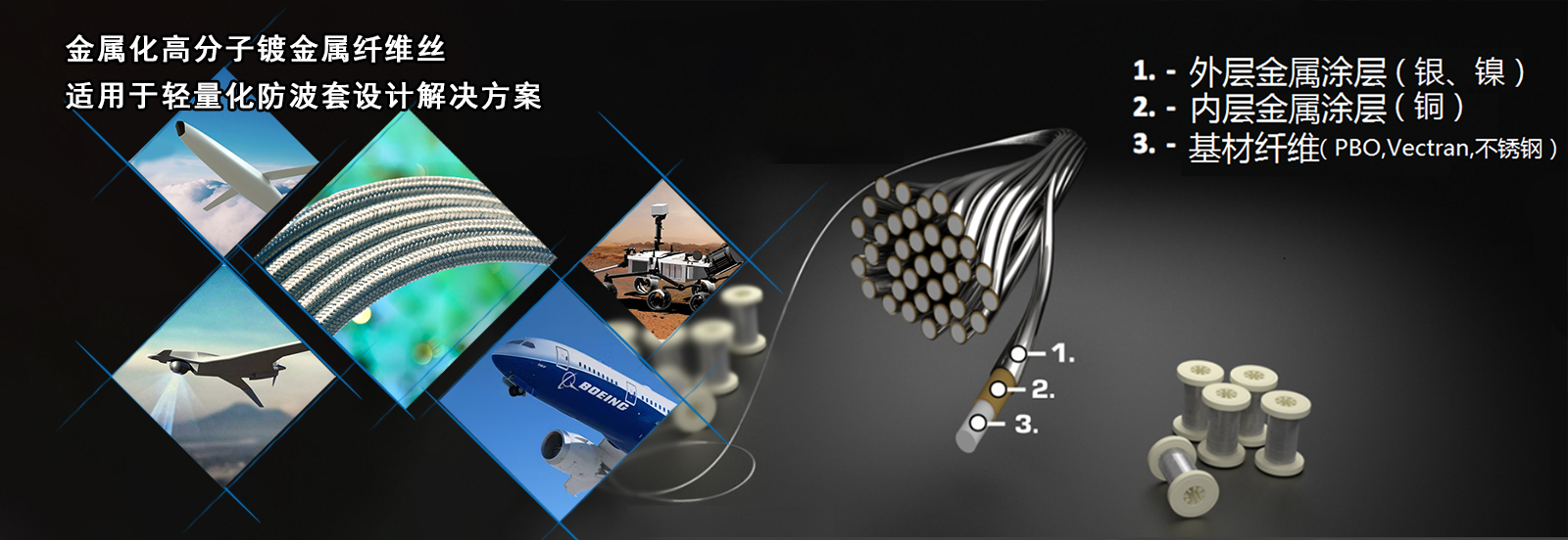 鍍金屬導(dǎo)電纖維絲是在高分子基材上雙層均勻涂鍍金屬,在航空航天線纜減重、機器人電纜屏蔽層、柔性天線、船舶拖曳電纜等減重和強度性能要求高的精密行業(yè)以更高的性能替代標(biāo)準(zhǔn)銅線,用作電纜、線束EMI屏蔽和專用導(dǎo)線。